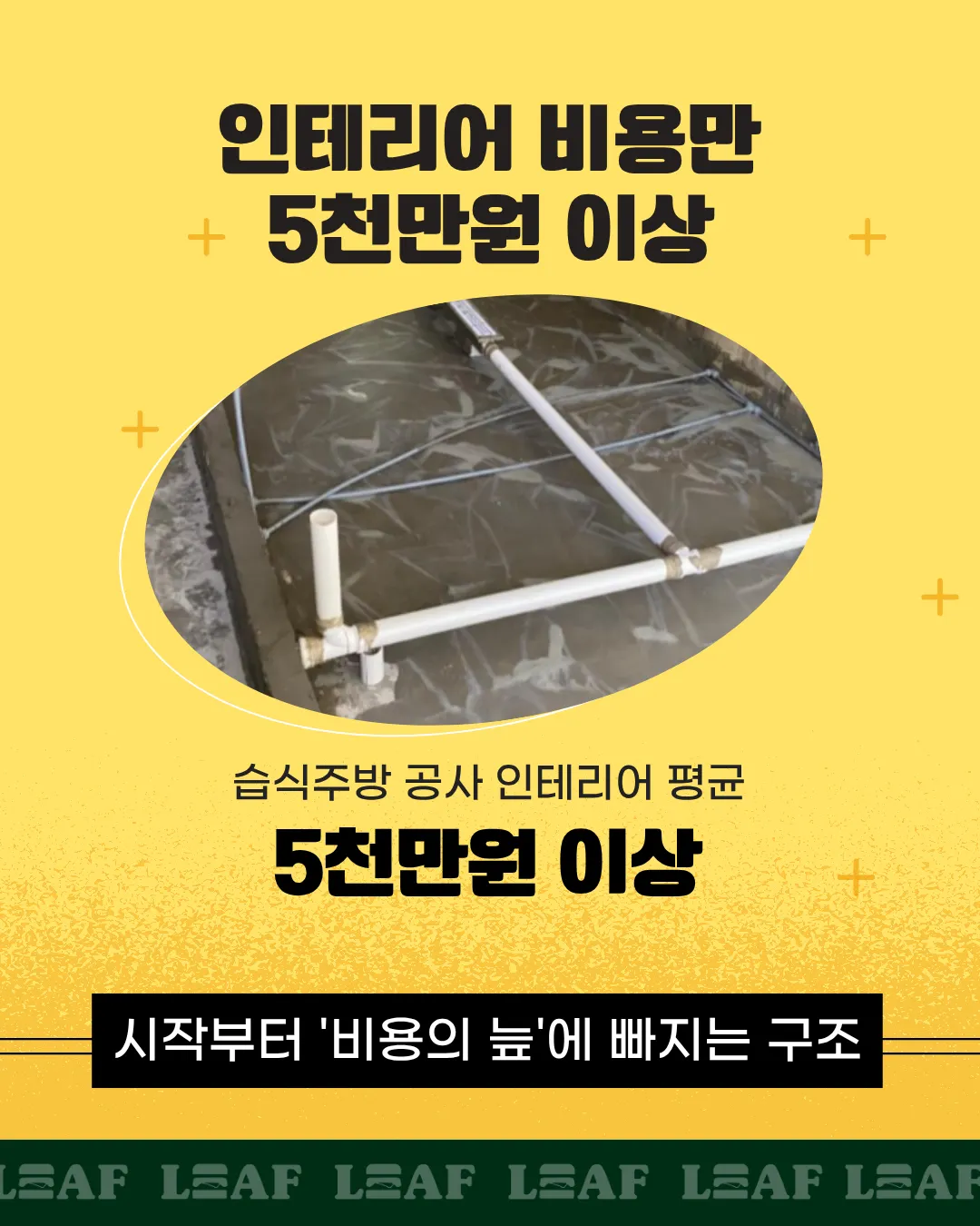 대부분 습식 공사로 인테리어 비용만 5천만원 이상