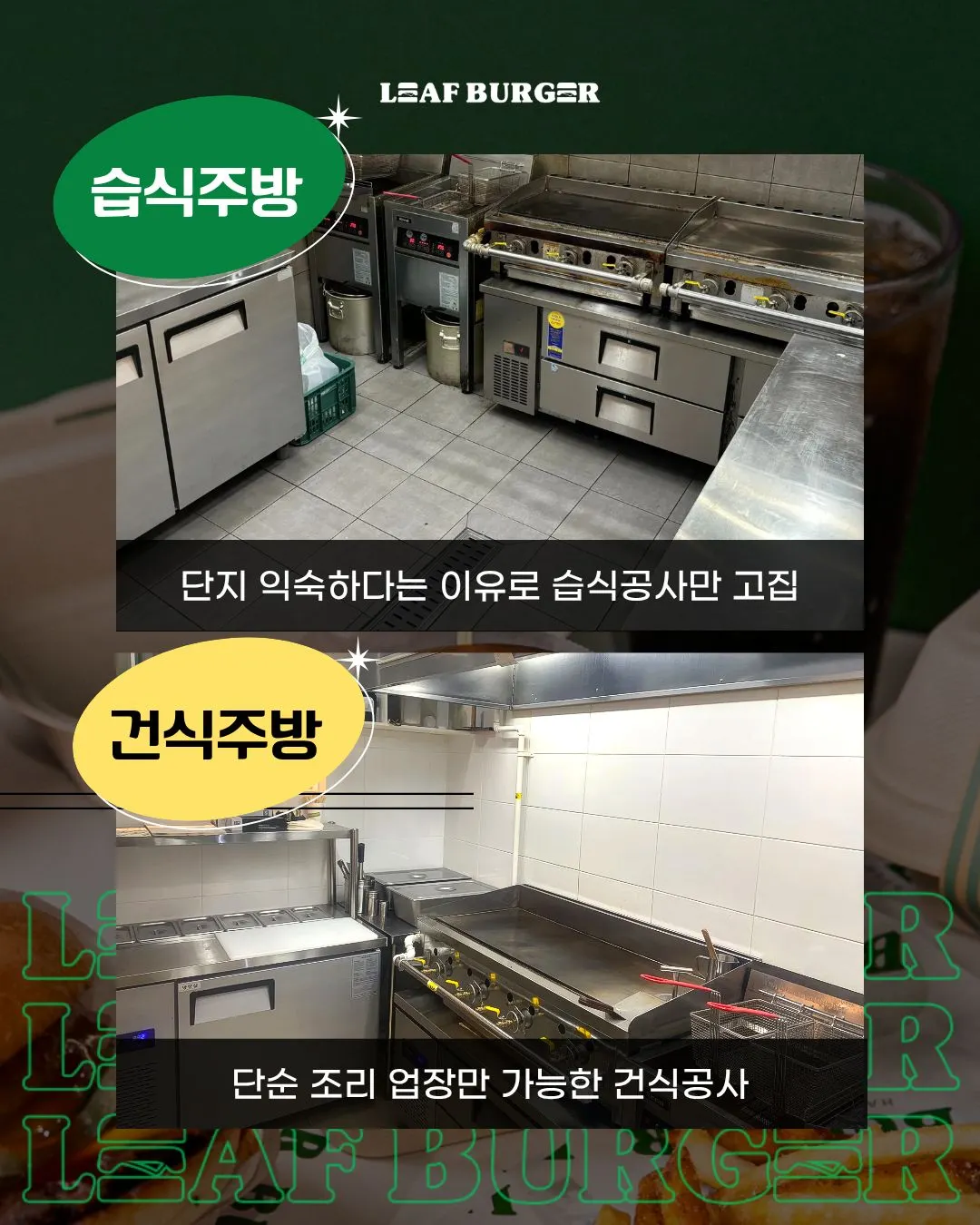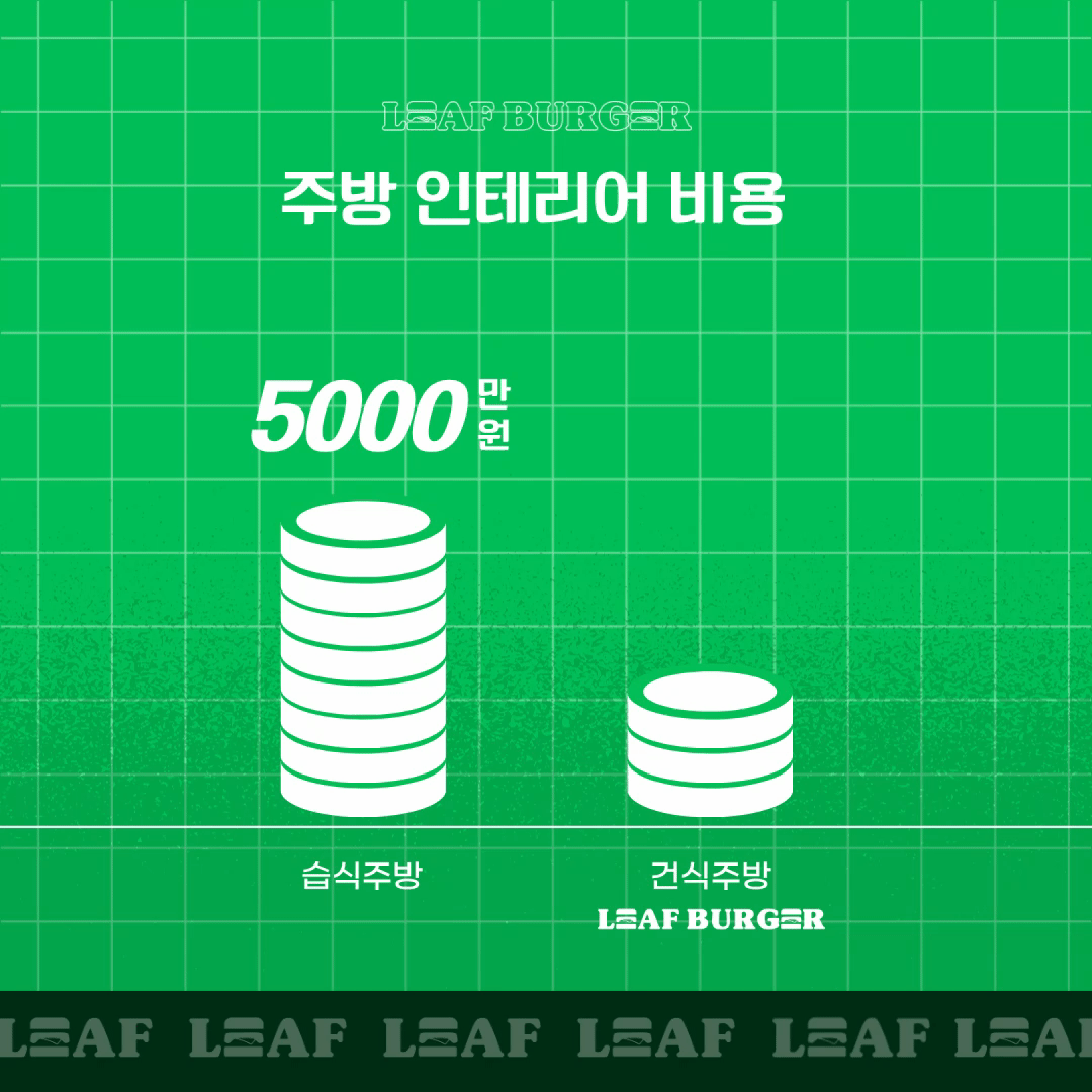 리프버거는 건식 공사로 인테리어 비용 절감!