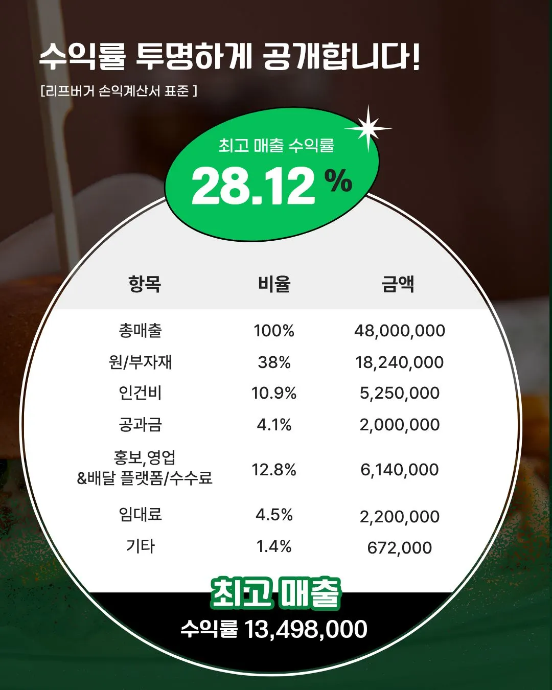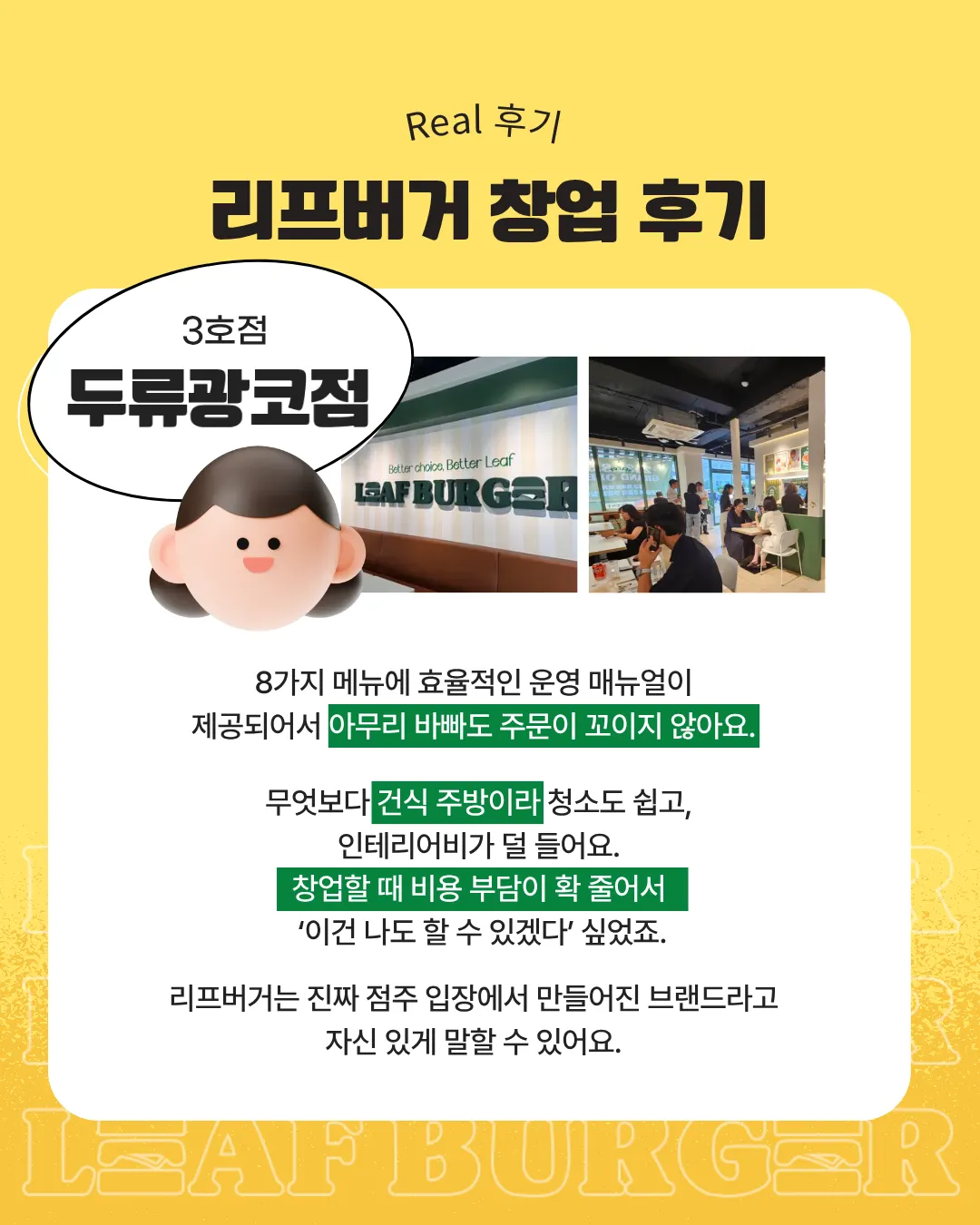 리프버거는 수제버거 창업 공식을 바꿨습니다.